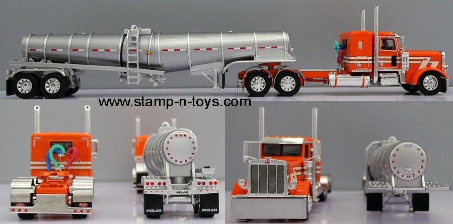 1st Gear/DCP 1:64th scale Peterbilt 389 Tractor w/36" flat top sleeper pulling a Polar Center Drop Tanker. Aftermarket parts as shown in the picture. Click on the magnifying glass in the picture for a larger view. Outstanding detail and very authentic. Comes new in the Box.