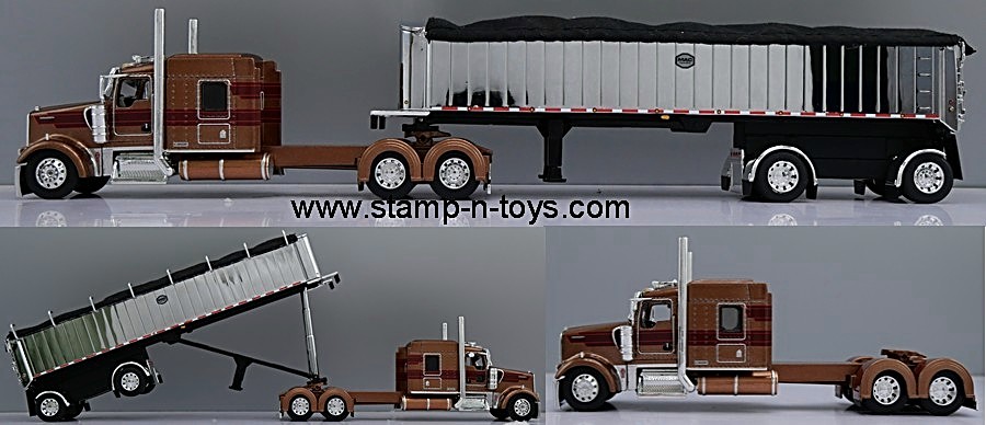 1st Gear/DCP 1/64 scale Kenworth W-900L with Aero sleeper & MAC chrome spread-axle Coal End Dump Trailer w/frame. The KW features an opening hood, detailed engine, working suspension, after market drop visor, half fenders and much more. Outstanding detail and very authentic. Click on the magnifying glass in the picture for a larger view.