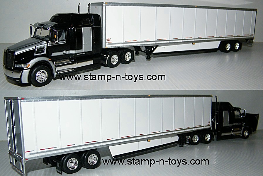 1st Gear/DCP 1/64th scale Western Star 5700 tractor w/68" raised roof sleeper pulling a Wabash vertical ribbed 53' Dry Van Trailer Outstanding detail and very authentic. Comes in protective clamshells inside a black DCP Box, Click on the magnifying glass in the picture for a larger view.